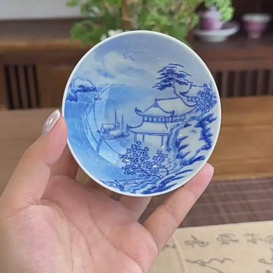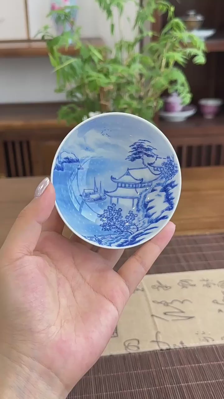 Enjoy a refined tea experience with this hand-painted Blue & White Snow Scene Pu-erh tea cup. Crafted in Jingdezhen, each cup is fully hand-painted, ensuring that no two pieces are identical. The high-temperature firing process enhances durability and gives the porcelain a flawless, luminous finish. Its 3oz (90-100ml) capacity is ideal for savoring Pu-erh tea, black tea, green tea, or rose tea, allowing the tea’s color and aroma to shine through beautifully.