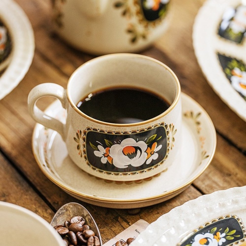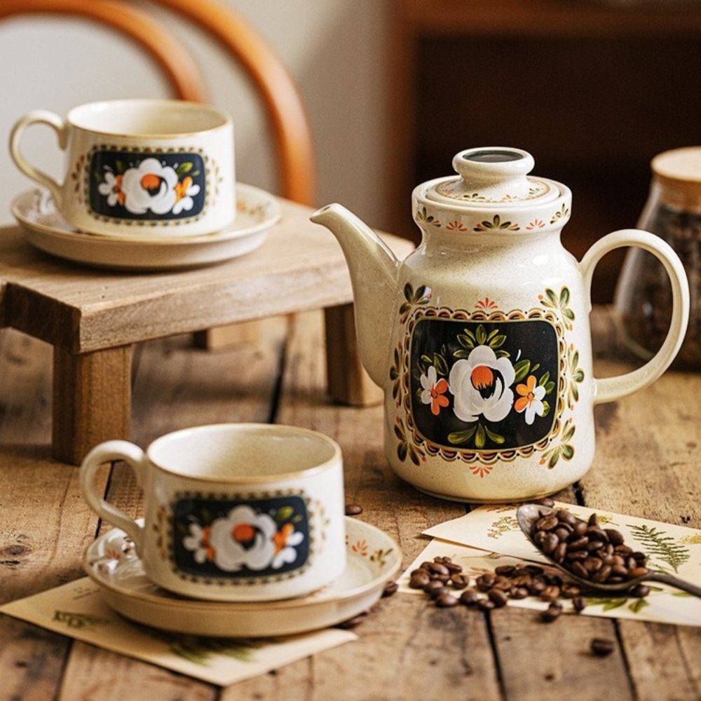 The teapot features a gently curved spout for smooth, drip-free pouring, making it easy to serve without spills. Cups and saucers are thoughtfully designed for versatility—use the saucers to hold pastries or place them beneath the cup for heat protection.