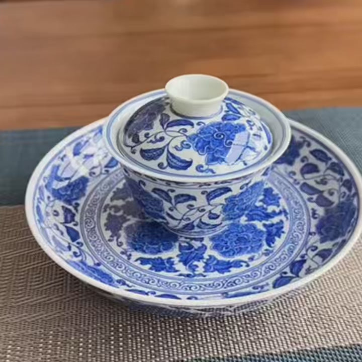Experience the artistry of Jingdezhen with this hand-painted blue & white porcelain Gaiwan (does not include tray). Each piece is meticulously crafted by skilled artisans, featuring intricate peony patterns that symbolize prosperity and elegance. This set includes a 120–130ml (approximately 4–4.4 fl oz) Gaiwan, perfect for brewing Gongfu tea, allowing you to savor the aroma and flavor of high-quality teas.