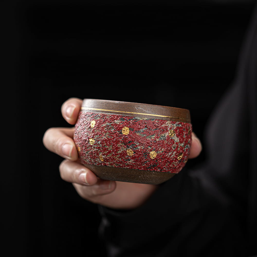 Elevate your tea ritual with the Handmade Rock Mineral Ceramic Tea Cup, a bold and elegant expression of artisan craftsmanship. This large tea cup is carefully handcrafted using natural rock mineral-infused clay, giving each piece its own distinctive color and texture. The surface features an earthy, raw porcelain finish enhanced with gold-painted accents, making it a true oriental tea cup with modern character.