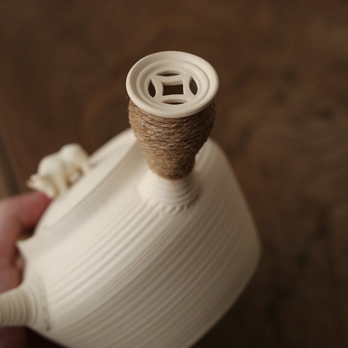 Enjoy a simple and traditional way of brewing tea with this natural white clay teapot and charcoal stove set. The teapot is made from breathable sandy clay, which allows water to circulate gently and helps bring out a smoother, sweeter taste from your tea. Its rustic shape and natural texture give it an understated, handcrafted feel that fits well in a calm tea setting or a minimal home space.