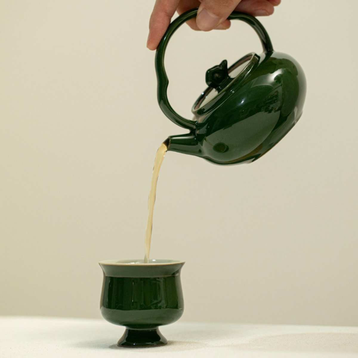 This Original Mineral Glaze Teapot is made with authentic mineral glaze, giving it a natural granny green finish. Its Chinese vintage design features a subtle cloud-style form, combining simplicity and elegance.