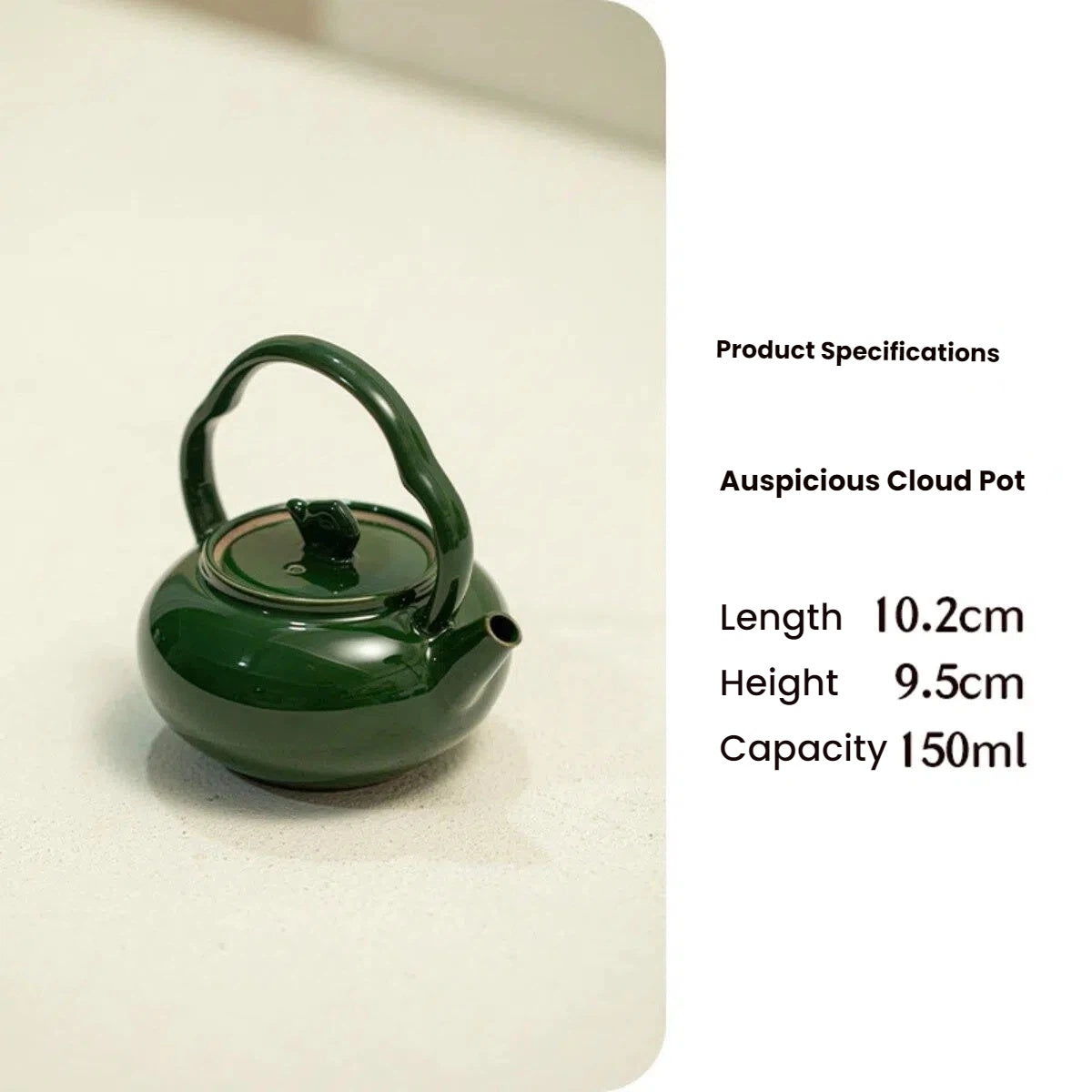 Measuring 10.2CM in length and 9.5CM in height, with a 150ML capacity, this teapot is suitable for brewing loose leaf teas. The compact size and ergonomic design make it convenient for daily tea use.