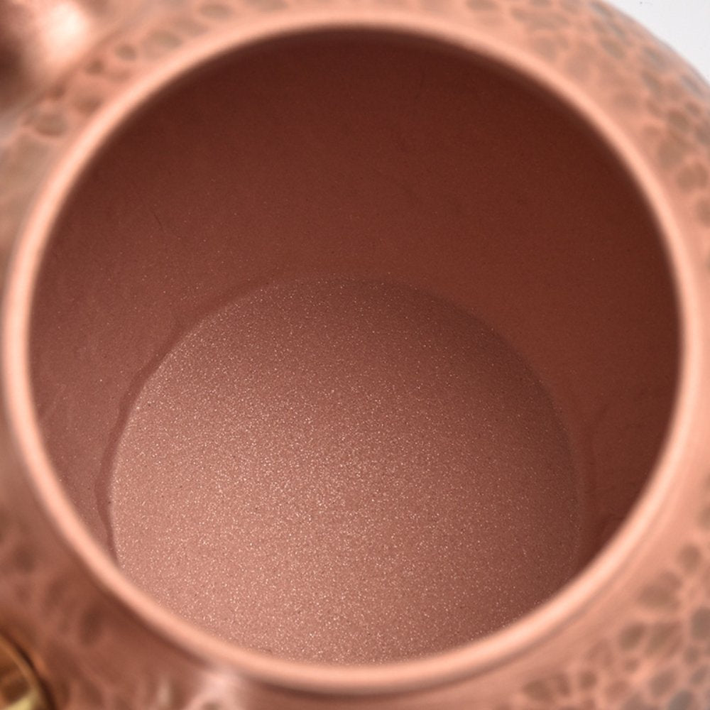 Compact and lightweight, this teapot is ideal for personal tea sessions, small gatherings, or desktop use. The high-quality copper body retains heat efficiently, enhancing the flavor and aroma of your tea, while the wooden handle protects your hands from burns.