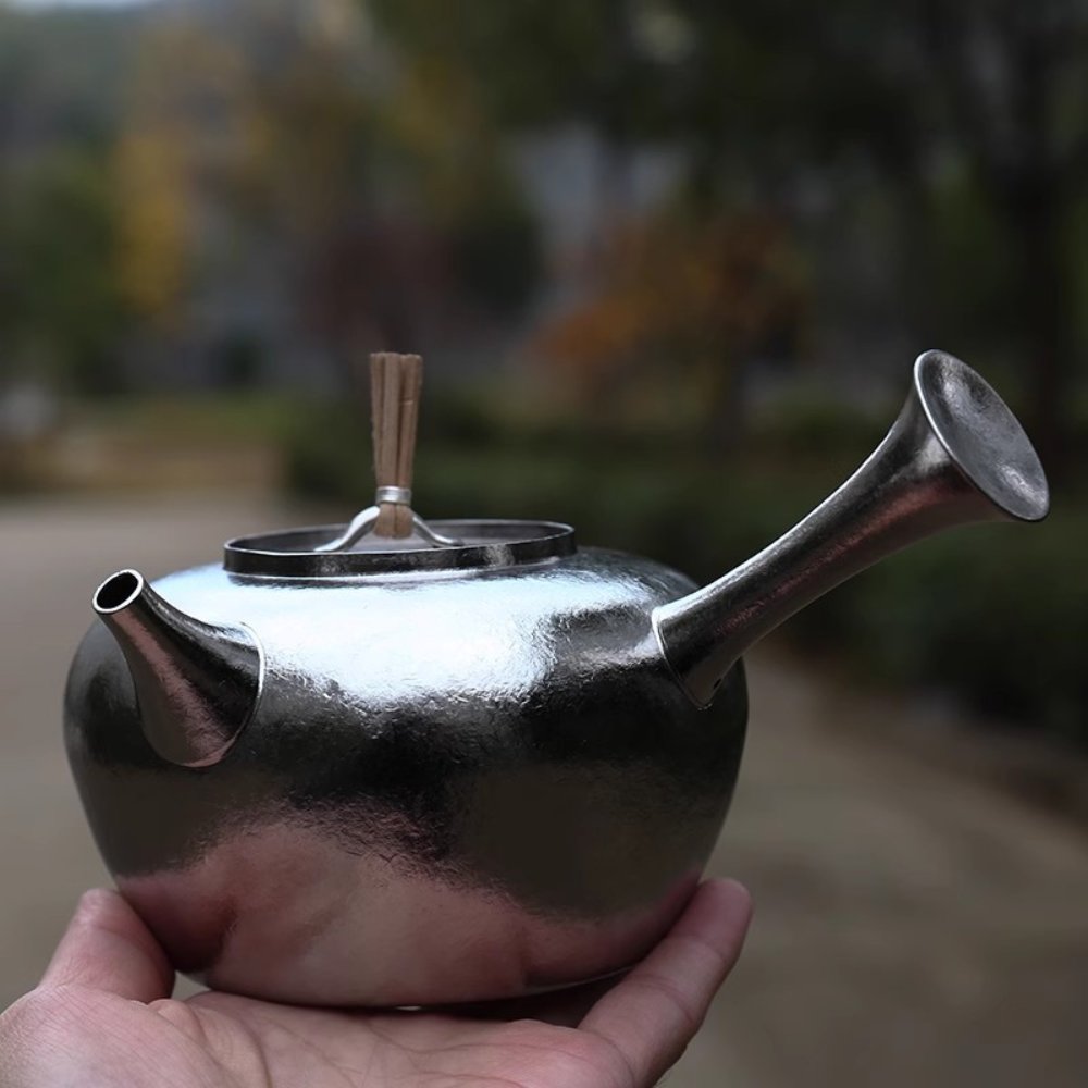 The lid remains secure even when tilted, and when water boils, it gently lifts and settles back, producing a clear metallic sound—a sensory reflection of precision engineering and tea tradition.