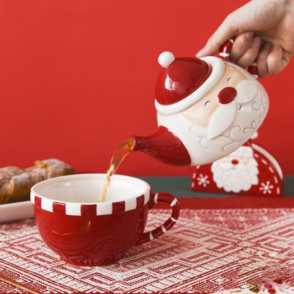 Santa Claus Ceramic Teapot & Cup Set – Modern Cartoon Holiday Tea Set