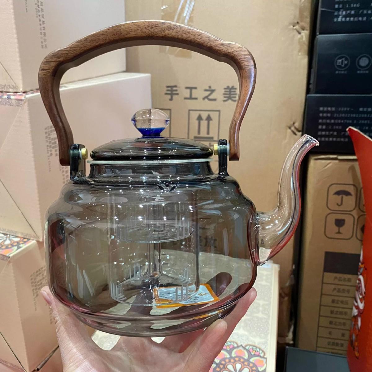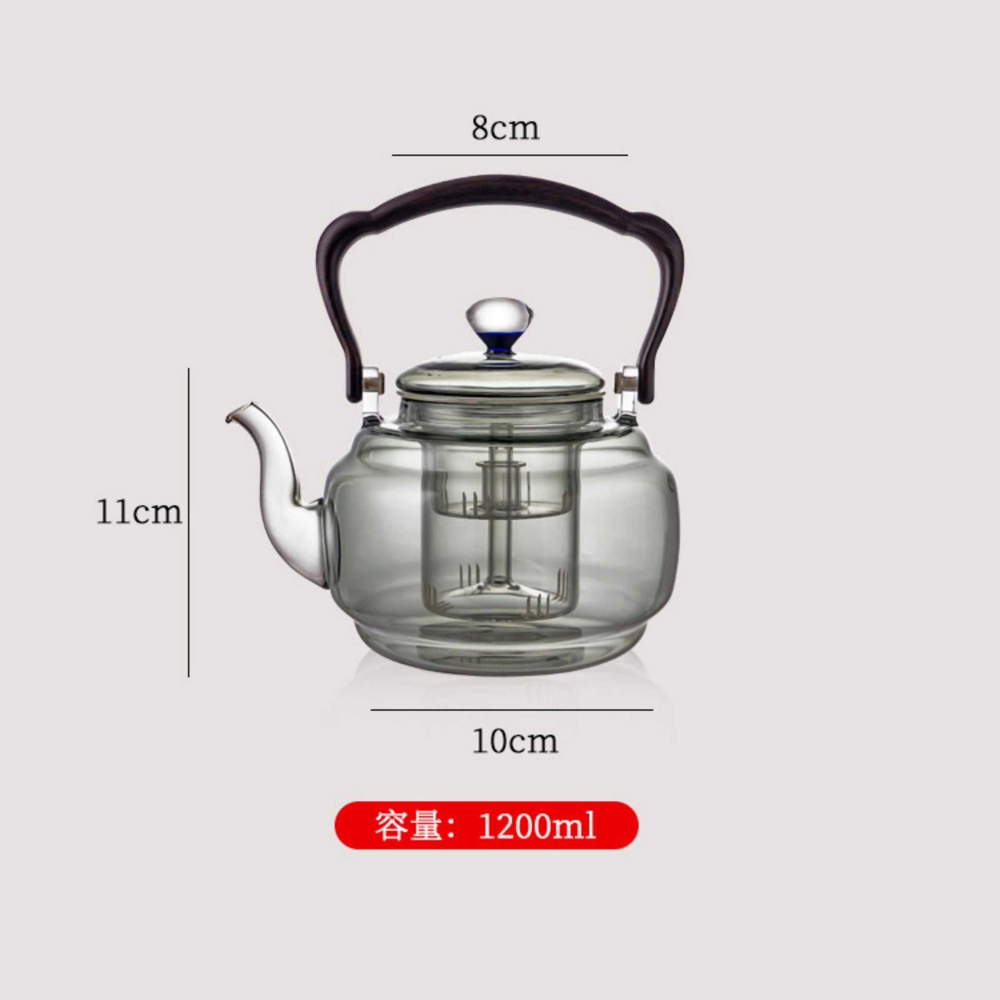 Experience elegance and versatility with this 1200ml Smoky Gray Glass Kettle. Made from heat-resistant borosilicate glass, it is safe for stovetop heating and perfect for brewing loose-leaf teas or steaming blooming flower teas.