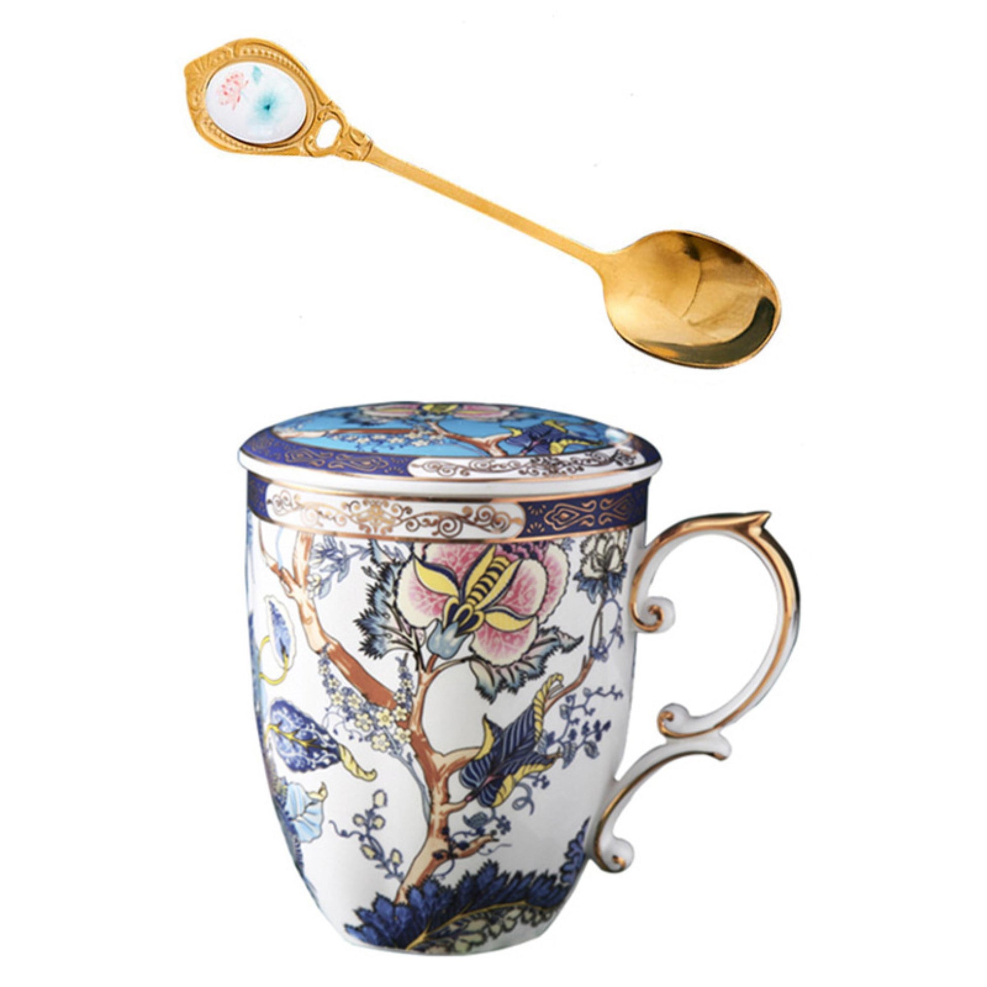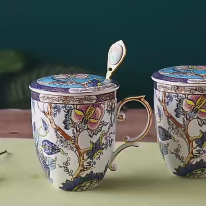 Adorned with vivid floral motifs and vintage-inspired patterns, this mug elevates tea, coffee, or hot chocolate rituals, and also serves beautifully for food photography or interior styling.