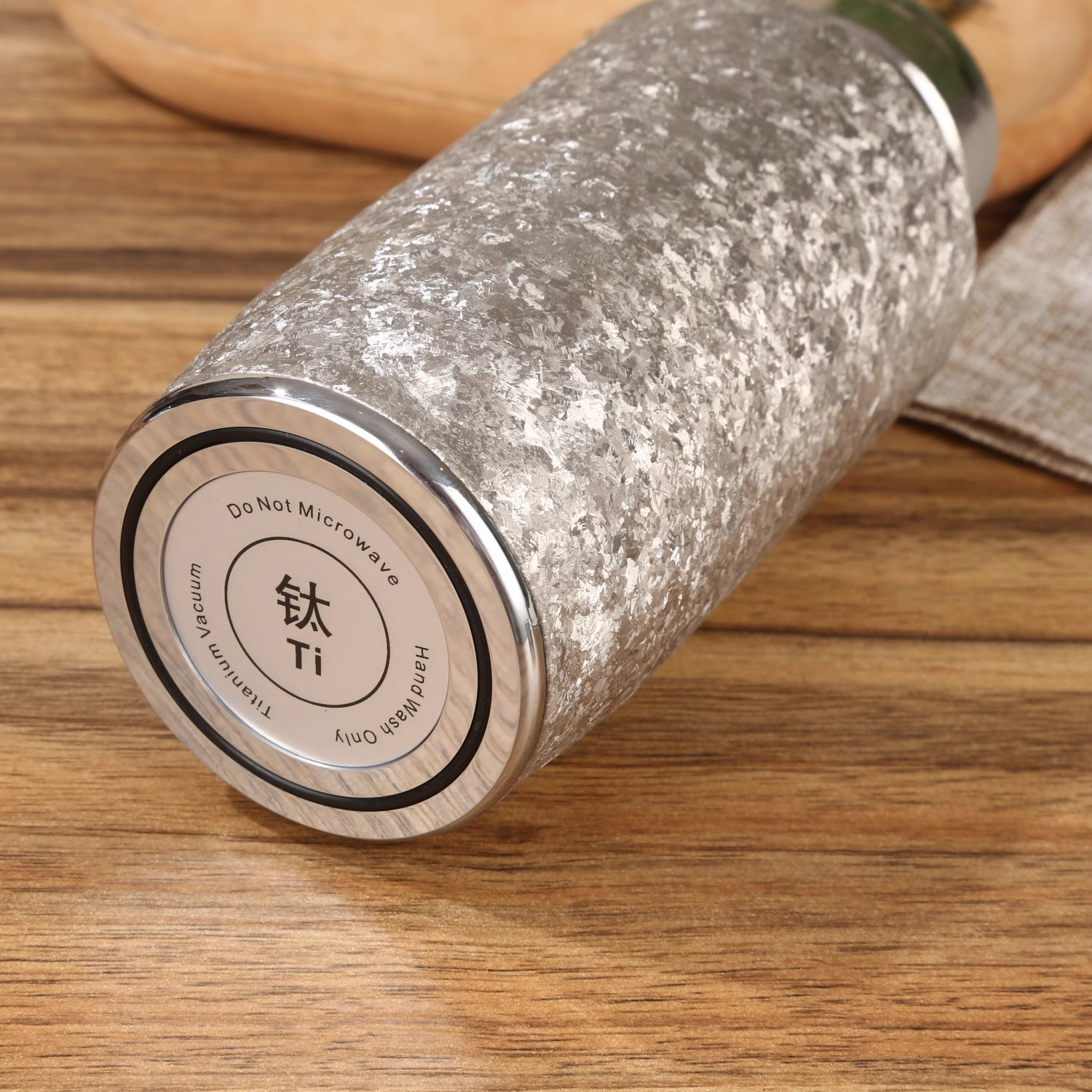 Enjoy your favorite beverages with this 16oz (460ml) pure titanium travel tumbler. Made entirely from high-quality titanium with multi-layer construction, it preserves the natural flavor of tea and coffee while being nearly 50% lighter than stainless steel. Each tumbler features high-temperature crystallization with snowflake-like surface textures, enhanced by TI-ANOX technology, giving a radiant metallic sheen without paint.