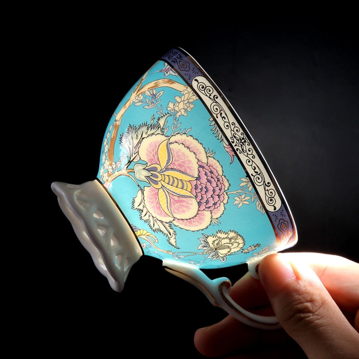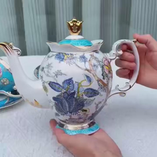 Whether you are hosting a tea party set, enjoying a pot of tea at home, or gifting a luxury tea set, this Turquoise Bone China Coffee & Tea Set brings sophistication and joy to every tea moment.