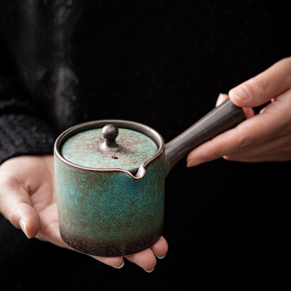 Zhanlan Blue Glazed Retro Ceramic Side-Handle Teapot 5 oz